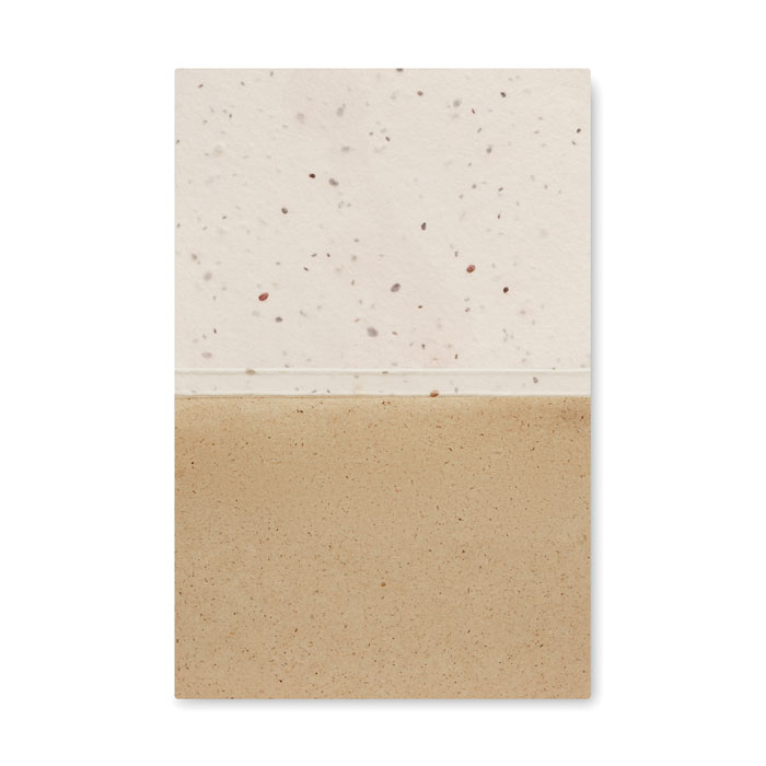 Soft cover growing paper with memo block of 50 sticky grass paper sheets. Like the traditional yellow memo pads you can write your notes down on the paper and stick them somewhere so you won’t forget them. When you have used all the 50 paper sheets, you can plant the memo block in the soil. A selection of wildflower meadow seeds will grow and give this item a new purpose. A truly green and sustainable office essential. Made in EU.